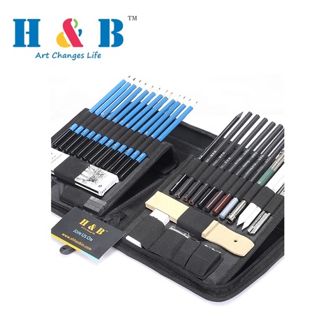 Suministros DE ARTE OEM, juego de lápices de dibujo y bocetos profesionales de 35 piezas en estuche de nailon para bocetos y dibujar con herramienta de dibujo