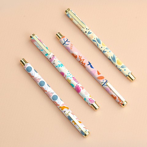 מכירות במפעל עטים מתנות עבור ילדה הדפסה מלאה עיצוב מותאם אישית פרחוני וזהב מתכת עם עט ג 'ל