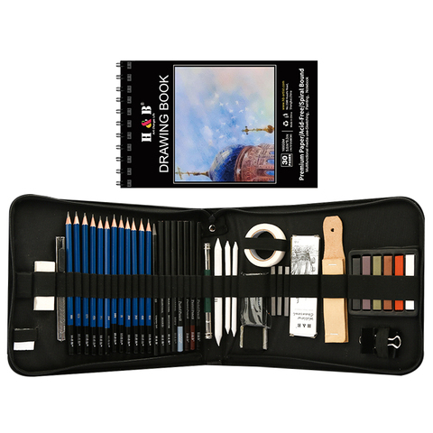 ชุดดินสอ40-PCS สำหรับวาดรูปแบบมืออาชีพชุดดินสอถ่านชาร์โคลแบบมีกระเป๋าทนทาน